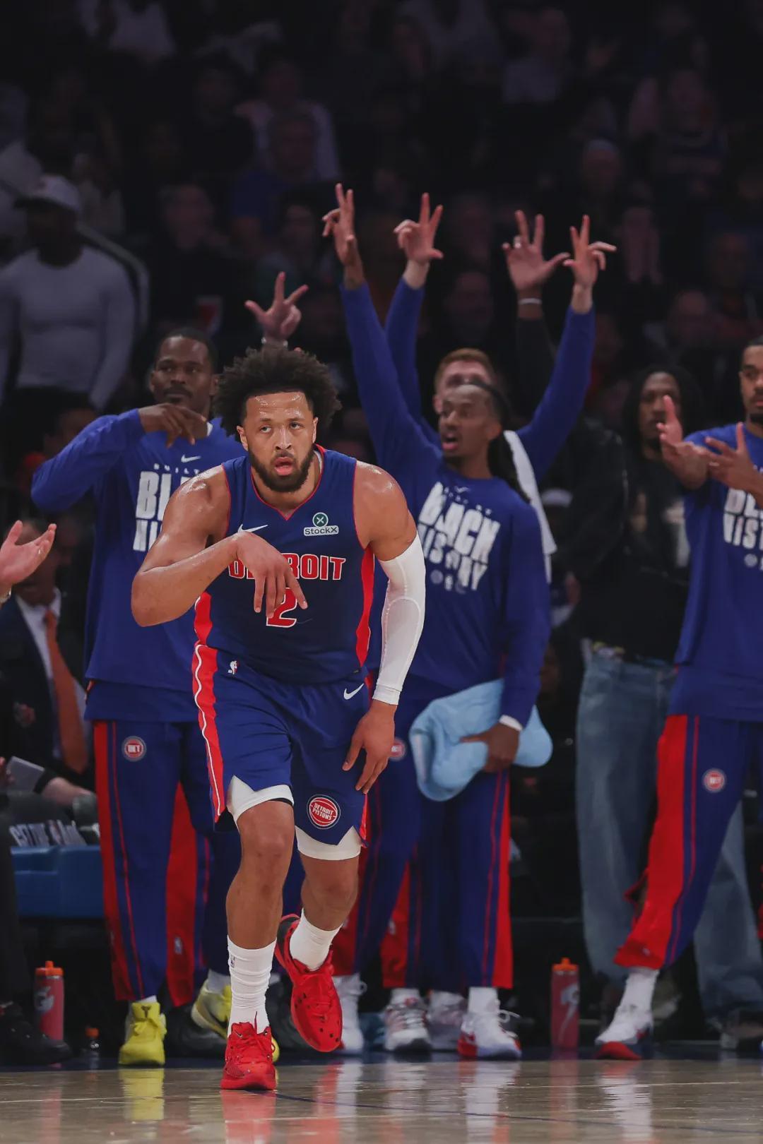 活塞狀元坎寧安今天開啟暴走模式:首發出戰38分鐘,34投17中,三分11中5,罰球3中3,狂轟42分8籃板13助攻1搶斷2蓋帽。他成為NBA歷史上第三個在麥迪遜廣場花園轟下40分+10助攻的客隊球員,前兩個是艾弗森和詹姆斯。